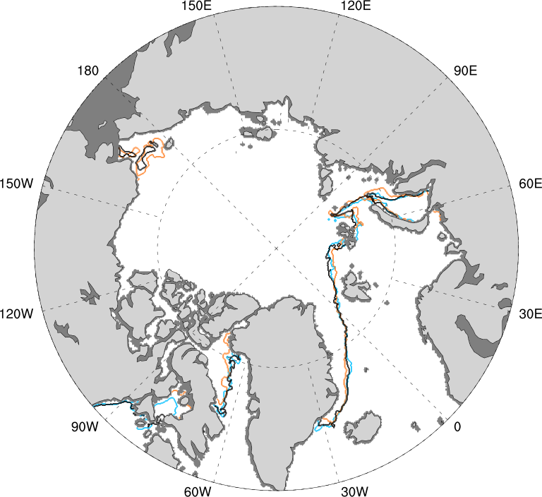| Edge nodes from observations in blue, from persistence in brown, from model in black |