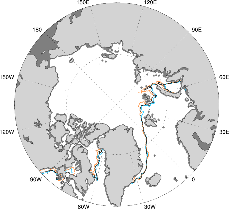 | Edge nodes from observations in blue, from persistence in brown, from model in black |