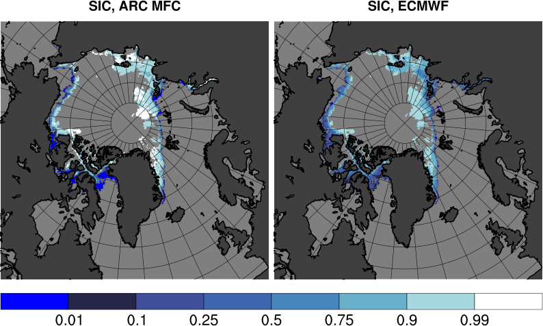 Monitoring results for sea ice concentration