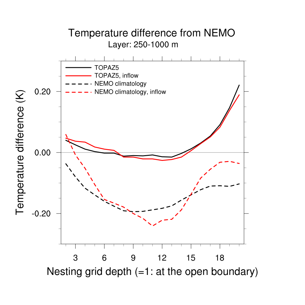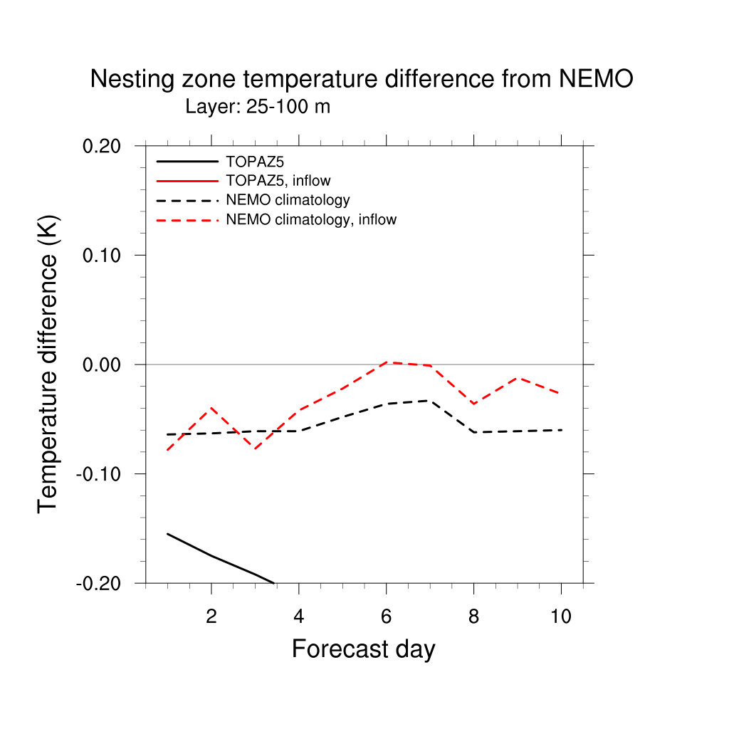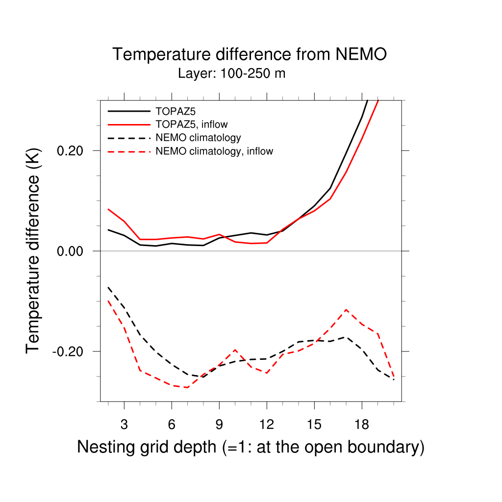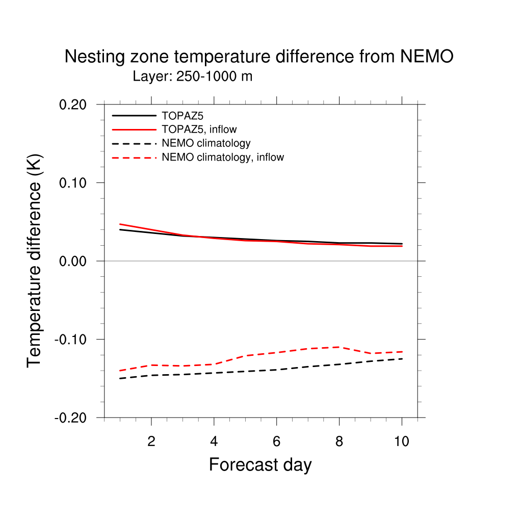 Temperature differences from NEMO forecast, by nesting depth