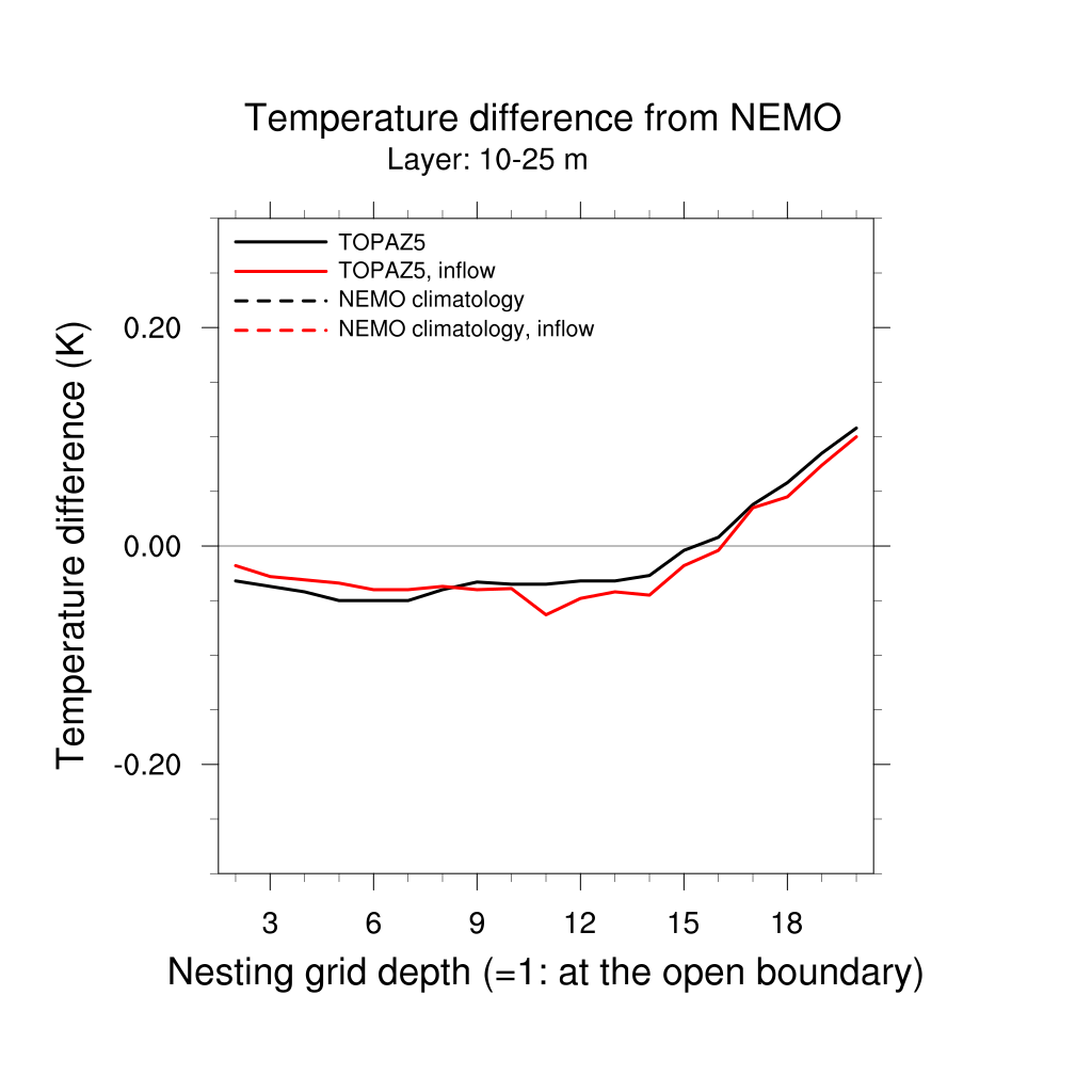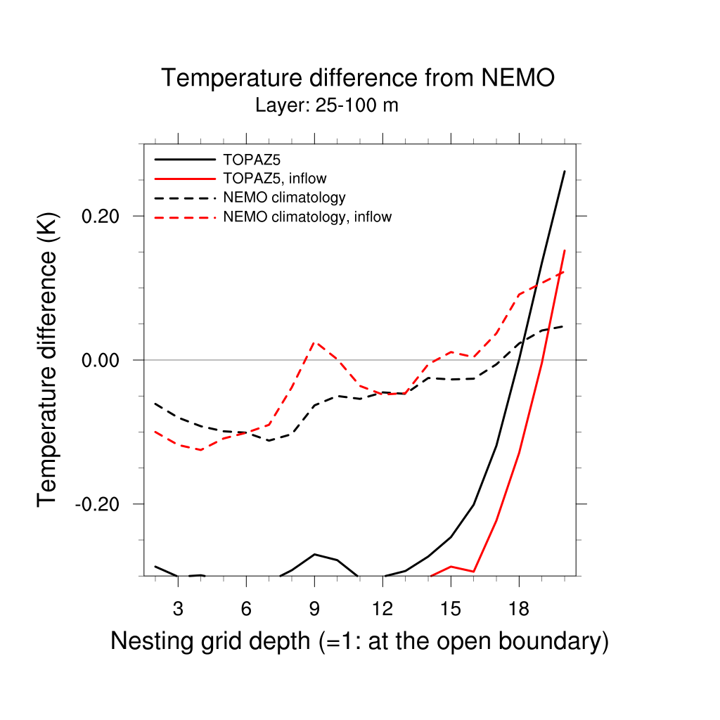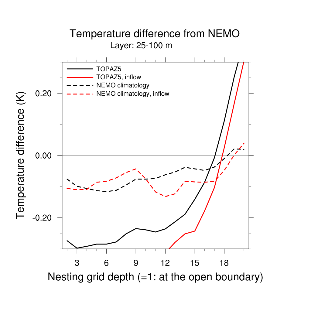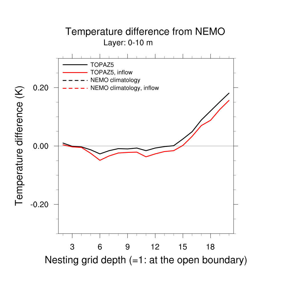 Temperature differences from NEMO forecast, by nesting depth