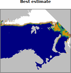 Very close drift ice, Fast ice (concentration range: 9/10-10/10)