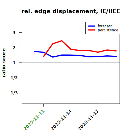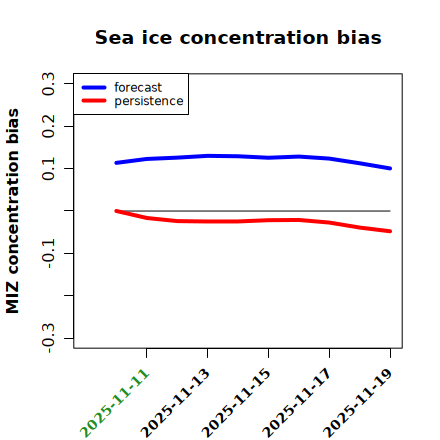 | Observations in blue, model forecast in grey, persistence in brown | |